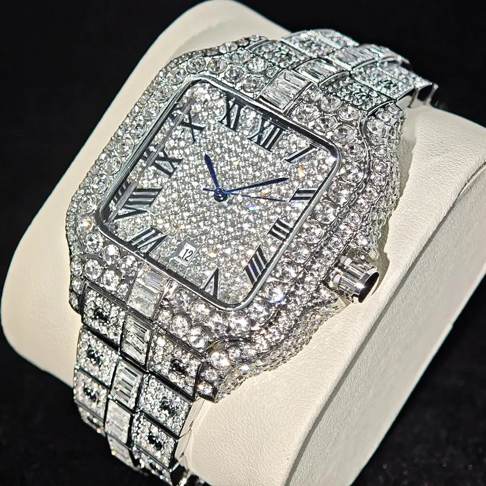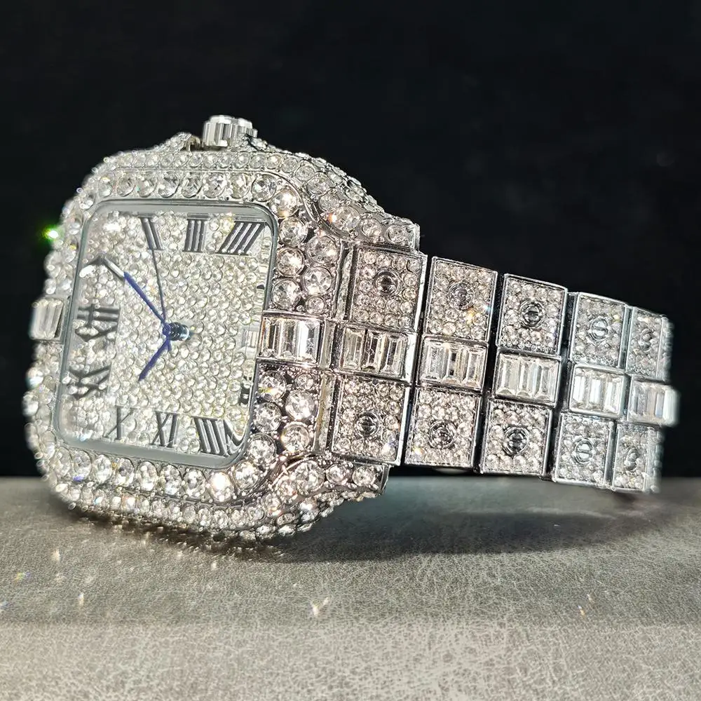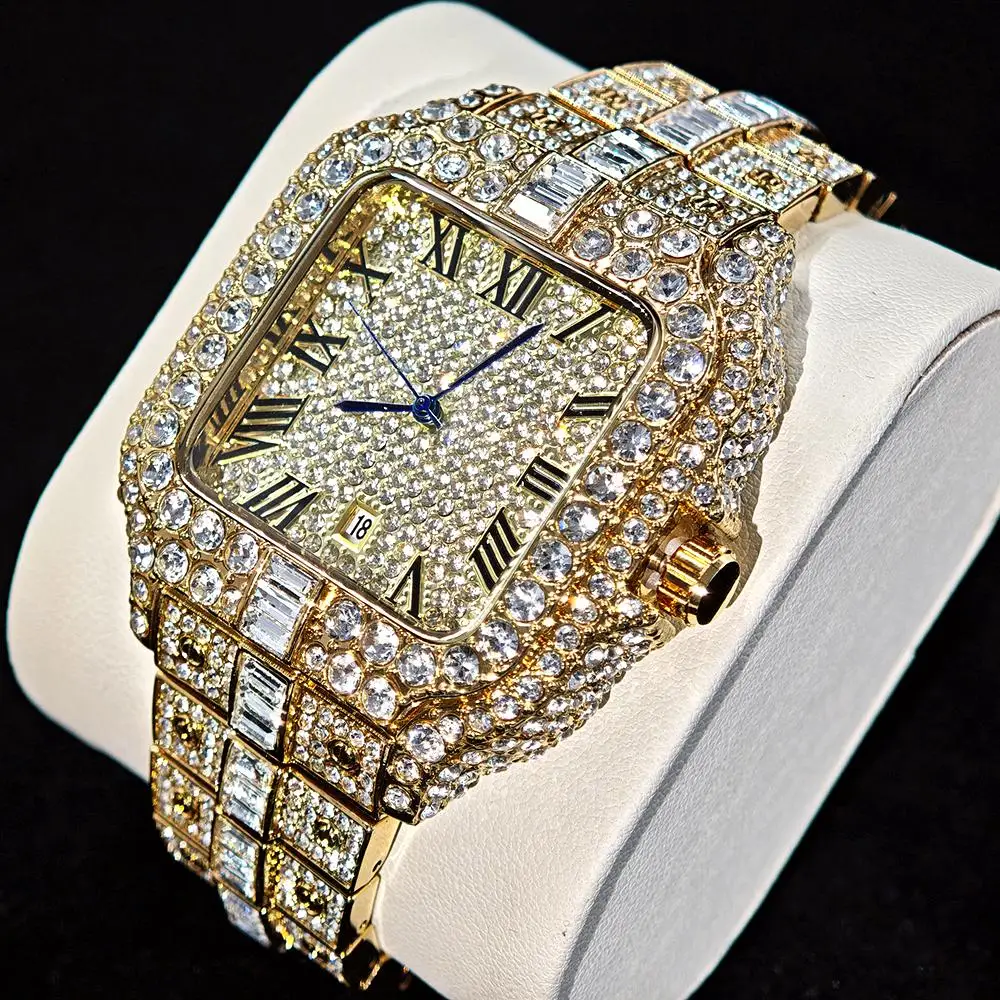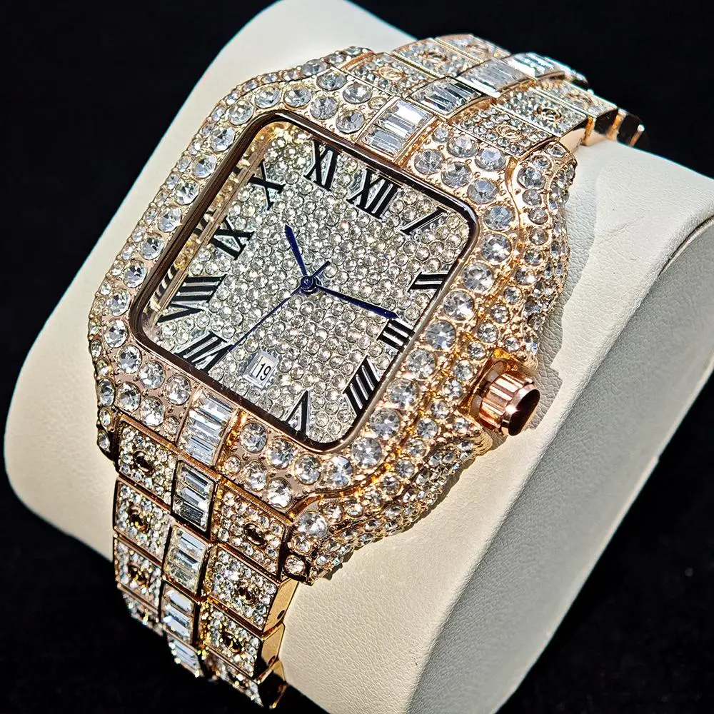 UNIGUET Fashion Diamond Watch for Men Luxury Waterproof Square Quartz Clocks Hip Hop Ice Out Jewelry Wristwatch Male Hot Sell
