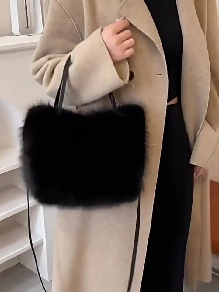 Faux Fur Tote Bag Women's Bucket Plush Luxury Design Ladies Handbags Soft Winter Crossbody Shoulder Bags Bolsa Feminina