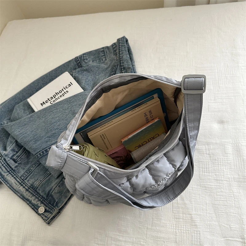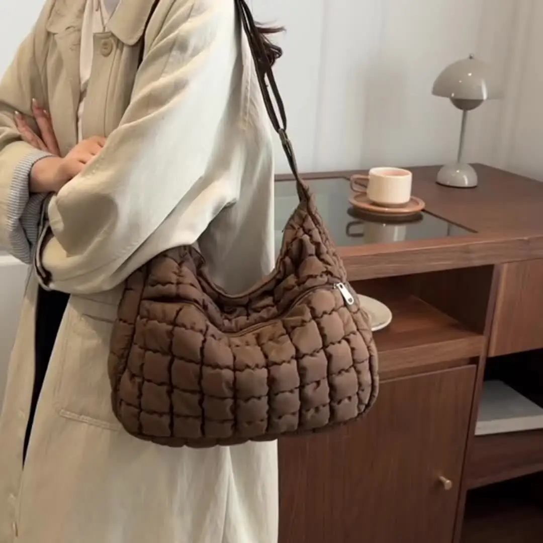 2025 New Quilted Puffer Shoulder Bag for Women Large Capacity Tote Sling Bag Fashion Casual Crossbody Satchel Bag Female Handbag