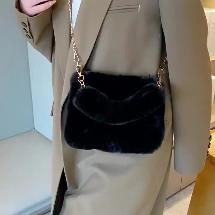 Fashionable Pearl Rabbit Fur Handbag Women's Crossbody Bag Chain Design Winter Small Versatile Shoulder Bag
