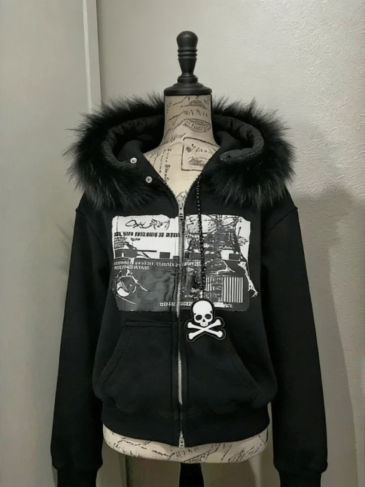 Gohic Vintage Sweatshirts Women's Jackets White Print Tunic Hooded Y2k Coat Streetwear Fashion Casual Hoodies Tops Ropa Mujer | HemmyEvo | Hemmyevo - Premier Online Fashion Store Nigeria