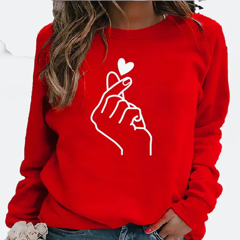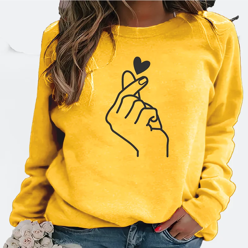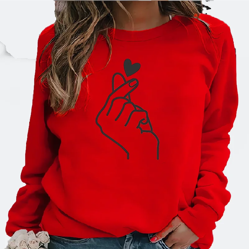 Fleece Hoodie Round Neck Love Gesture Printed Hoodie Explosion Female Aesthetic Sweatshirt Clothes Streetwear Women Tops | HemmyEvo | Hemmyevo - Premier Online Fashion Store Nigeria