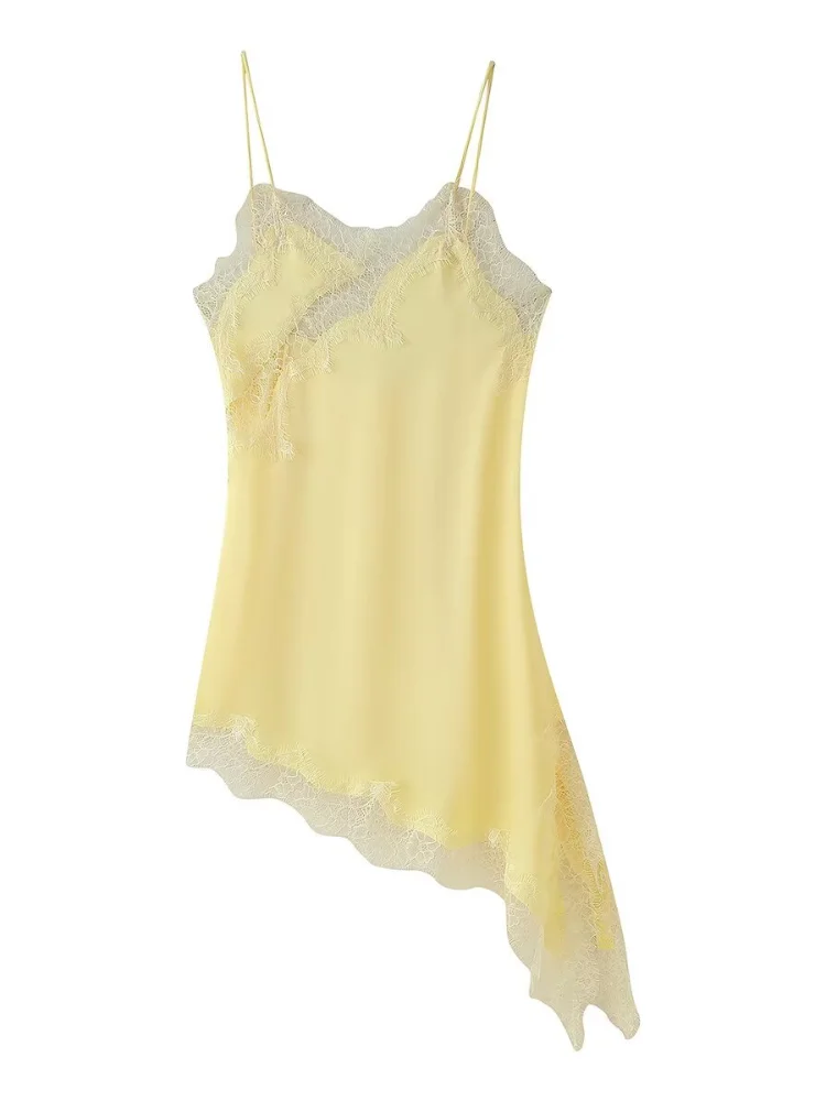 Brown Satin Sexy Lace Spliced Short Sling Dress Women V-neck Sleeveless Backless Asymmetric Party Dresses 2026 Summer Lady Robes | HemmyEvo | Hemmyevo - Premier Online Fashion Store Nigeria