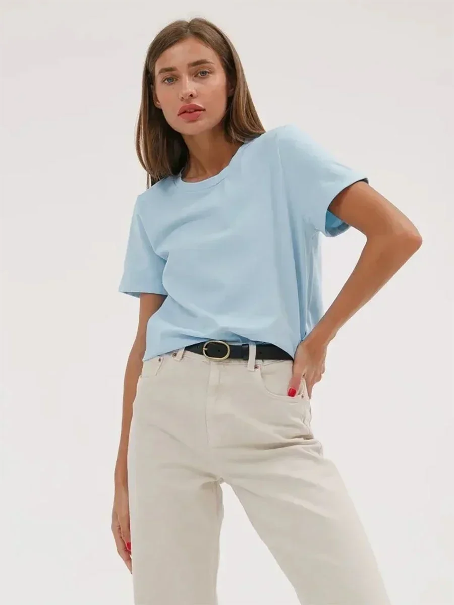 Bornladies Summer 100% Cotton Women's T-shirt Bottoming Basic Fashionable Solid Lady Short Sleeve Loose Tops Shirts 230g/㎡ Tops | HemmyEvo | Hemmyevo - Premier Online Fashion Store Nigeria