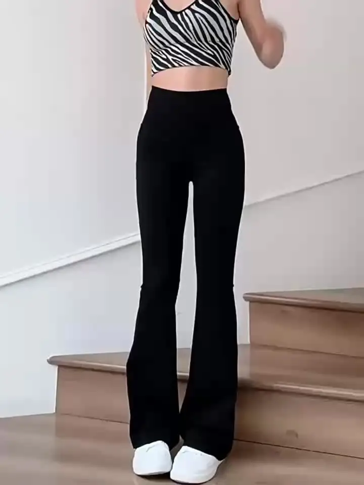 Women's spring and summer high waisted tight fitting flared pants, slim leg long black pants, thin wide leg pants for slim women