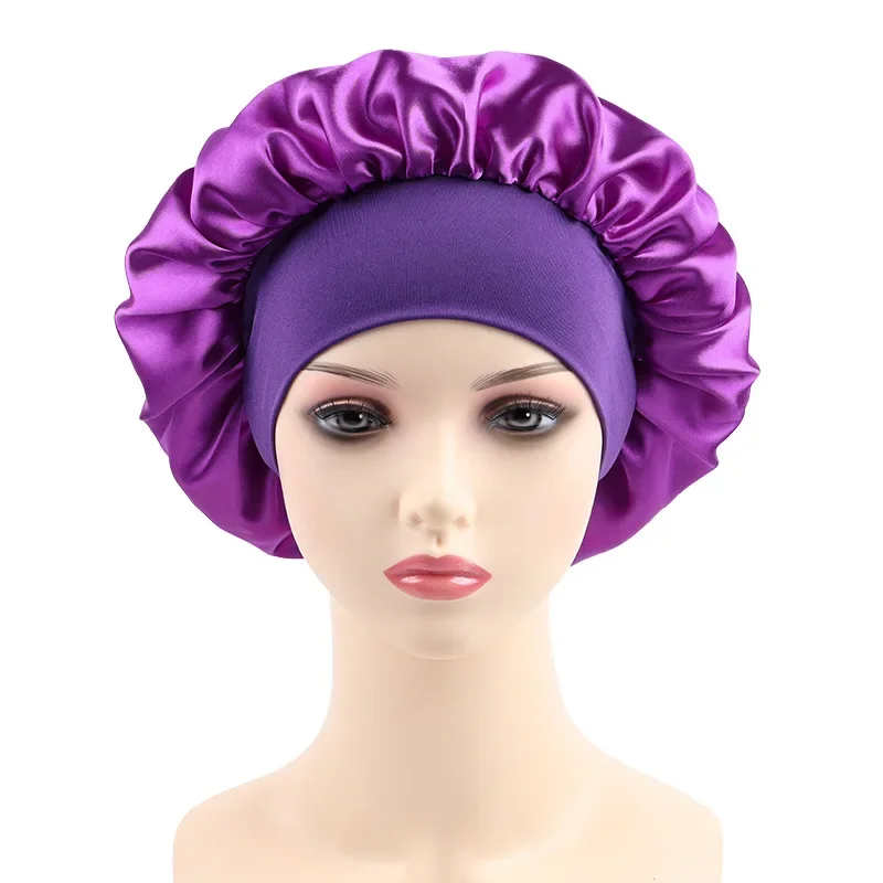 Women's Satin Solid Elastic Wide-brimmed Sleeping Hat Unisex Head Wrap Elastic Band Cap Hair Care Bonnet Night Hat bonnet